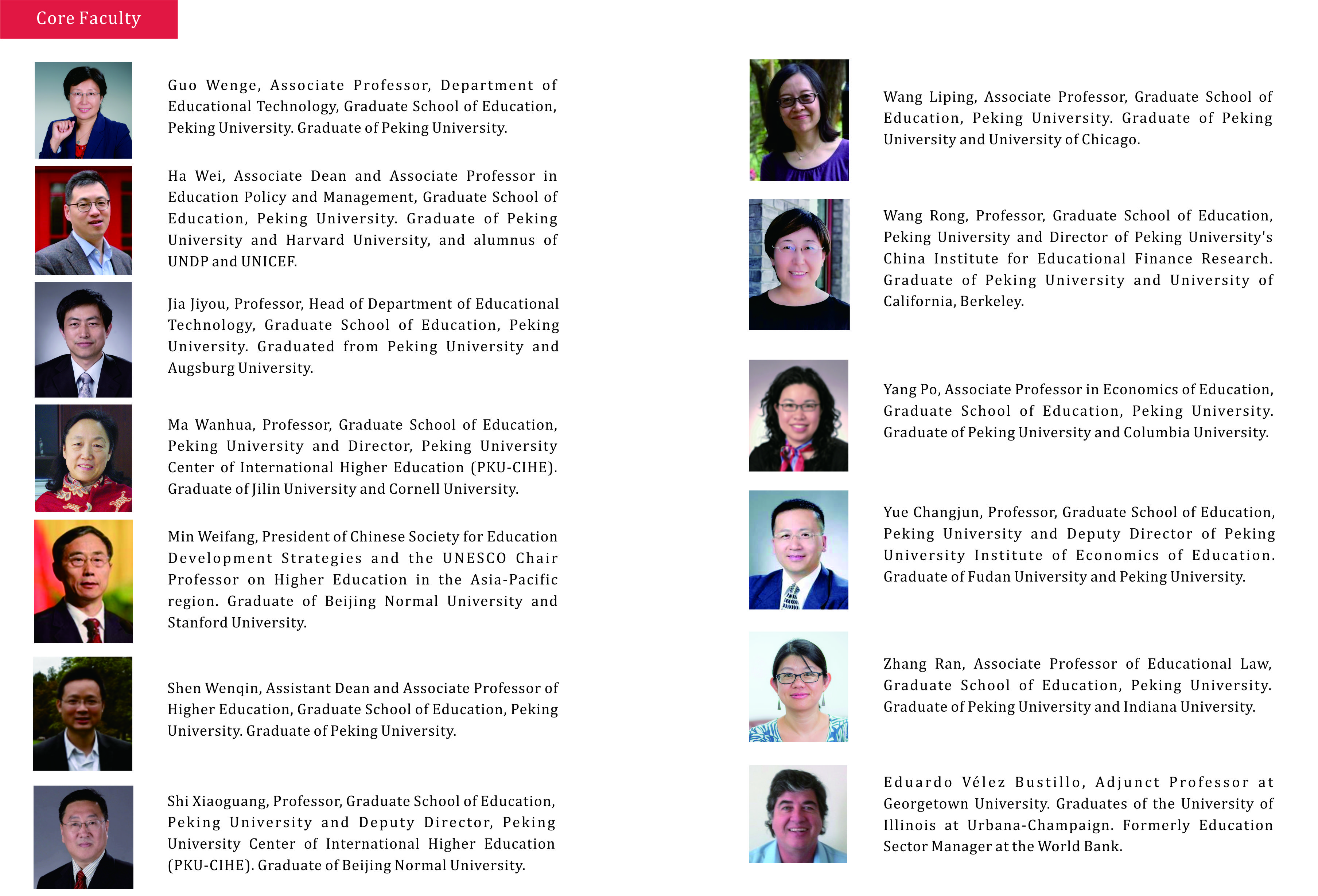 This program leverages both the high-quality teaching resources and research capabilities of Peking University, the Graduate School of Education therein, and the China Institute for Educational Finance Research, as well as the practical training and expertise of the Asian Development Bank, World Bank, United Nations and other international organizations. Thus, this program focuses on expanding students' horizons internationally and allowing students to fully understand international education development, both in theory and in practice. An intimate cohort of talented international students and faculty will enable students to develop an impressive network and to really get to know their peers and their faculty. We offer our students opportunities to gain hands-on professional experience through our practicum and internship programs.
