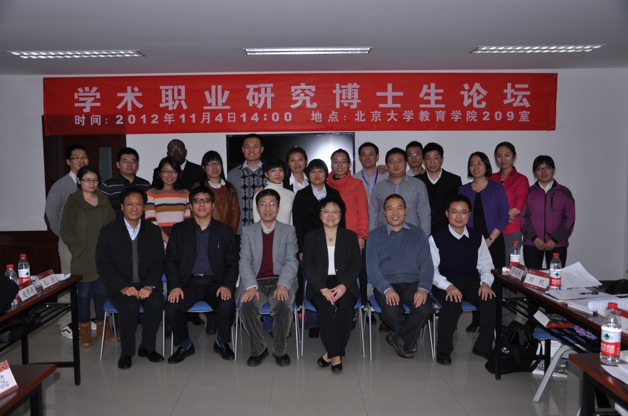 学术职业研究是高等教育研究中的一个重要领域。2012年11月4日下午2点,北京大学学术职业研究博士生论坛于教育学院209成功举办。本次论坛邀请到了北京大学、北京师范大学、清华大学、浙江大学、华中科技大学、华东师范大学等院校的二十余名博士生参与。共有九位博士生代表进行了会议发言。华中科技大学沈红教授、北京大学阎凤桥教授、郭建如教授和沈文钦副教授担任了此次论坛的点评嘉宾。