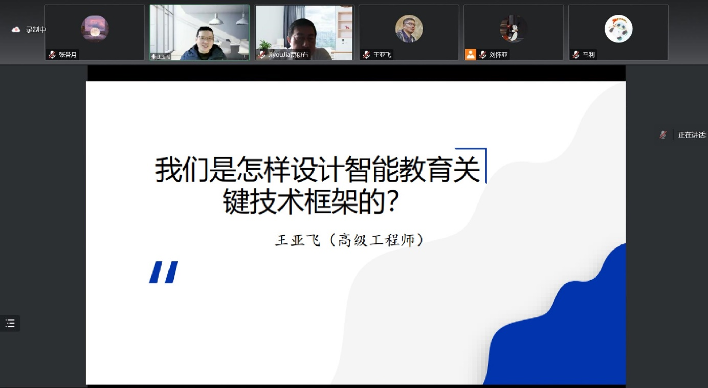 在第二场报告中,王亚飞副院长围绕“智能教育关键技术”,讲解了智能教育现状、智能教育关键技术的概念和智能教育技术系统的设计框架。