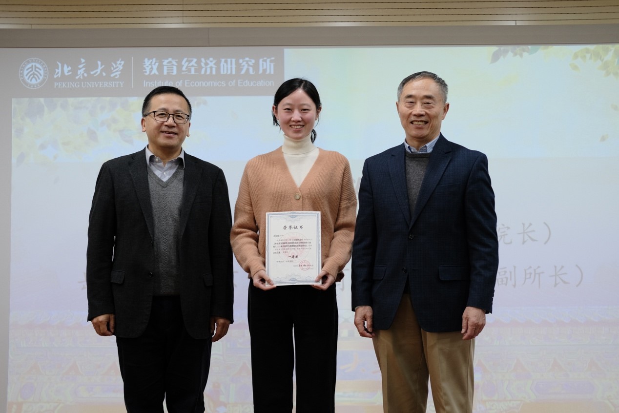 北京大学教育经济研究所副所长岳昌君教授宣布优秀论文评选结果,欧亿体育名誉院长闵维方教授为获奖同学颁奖。本届论坛共收到来自39所高校的中英文论文61篇,邀请来自北京大学、复旦大学、南京大学、华中科技大学、厦门大学等高校的24位专家学者进行了两轮匿名评审。根据校内外评审专家的双盲评审结果,最终评选出21篇获奖论文,包括一等奖3篇、二等奖6篇、优秀奖12篇。其中,冯沁雪、毛奇、薛远康获一等奖;陈得春、郭秋月、张文杰、蔡晨露、吴莞生、吴奇艳获二等奖,曹宇莲、金红昊、万博绅、王鐘、陈祥梅、贺海琨、廖小薇、孙绪光、万芮、张鑫杰、张子涵、朱春雨获优秀奖。除获奖论文外,还有3篇优秀论文入围口头汇报,13篇优秀论文入围海报展示。
