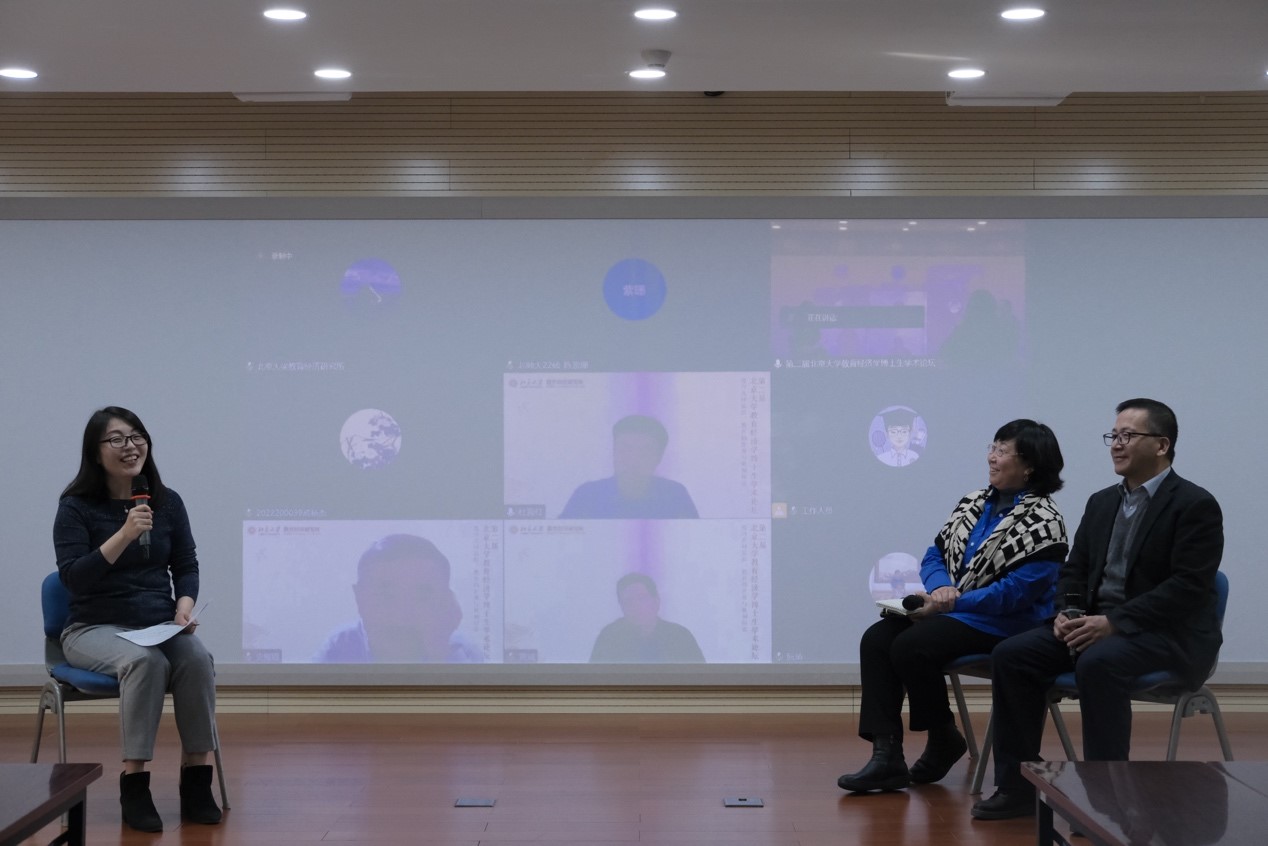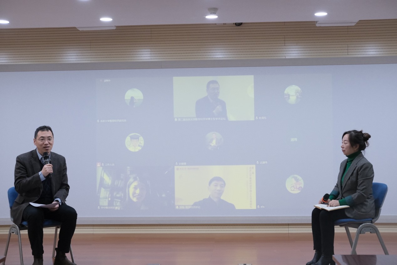 北京师范大学教育经济研究所所长杜育红,南京大学教育经济与管理研究所所长黄斌,陕西师范大学教育实验经济研究所所长史耀疆,华中师范大学教育学院《教育与经济》编辑部主任叶庆娜,北京师范大学教育学部副教授、《教育经济评论》编辑部副主任郑磊线上出席。
