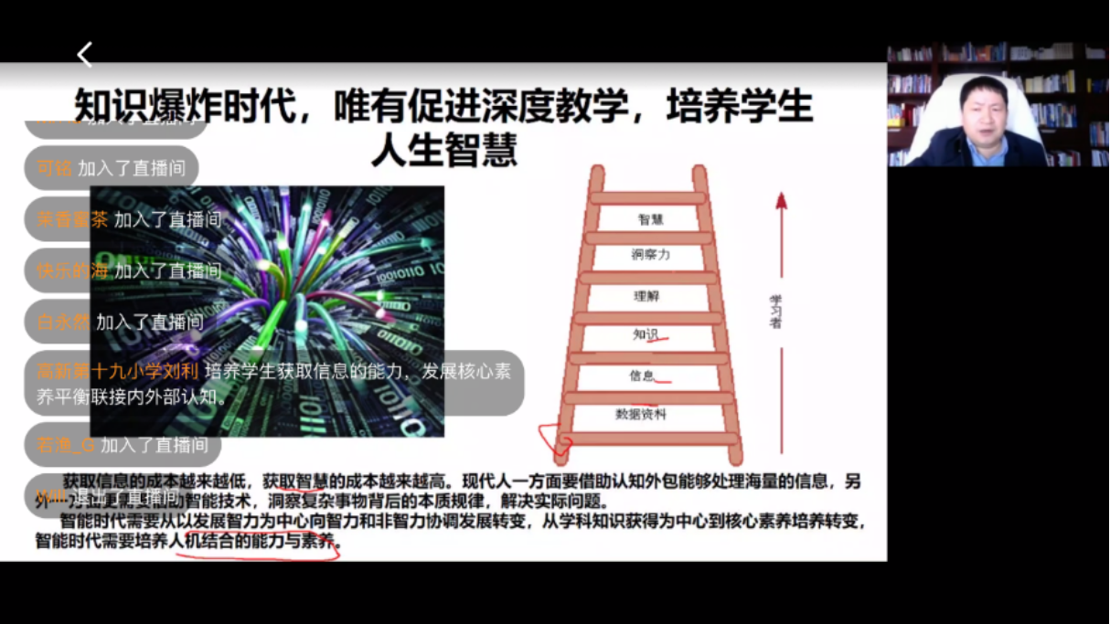 2021年1月16日下午,“2021北京大学基础教育论坛”七场平行分论坛和一场工作坊在线上举行,数千余名与会嘉宾围绕“教师专业发展”、“民办教育发展”、“AI教育与计算思维”、“教育信息化”、“区域教育均衡发展”、“生涯教育”、“教育领导力”、“数字化阅读”等主题积极讨论,进行了深入而热烈的交流。