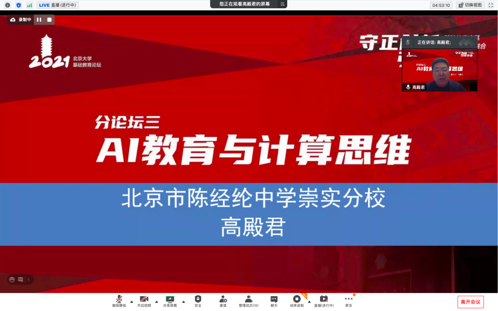 2021北京大学基础教育论坛“AI教育与计算思维”分论坛成功举办