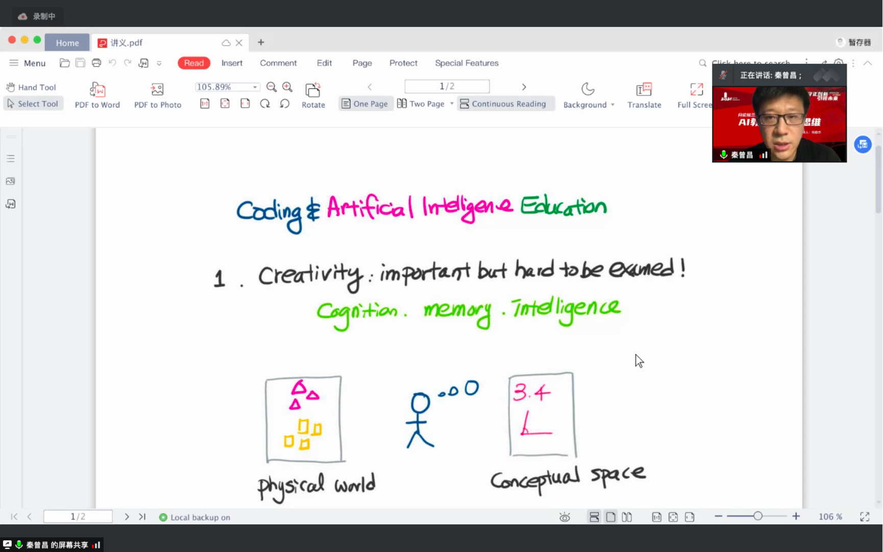 编程猫首席科学家秦曾昌谈到了对创造力进行理解,认为像营造语言学习环境一样,营造训练逻辑思维的世界环境就是编程,学习编程的时候,就是用逻辑探索世界。认为人工智能做的事情就是把现实问题解构为数学问题来求解。所以中小学要学好人工智能就要学好数学和编程。