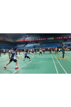 第二天比赛为淘汰赛赛制,每一项采用三局两胜制,这对队员的体力和意志都是一种考验。八进四比赛首战C组第一的地空学院,队员们都知道这将会是一场艰难的比赛,因此大家七点多就早早赶到球场,在球馆还未开灯的情况下,借着微弱的室外光开始热身和练球。混双依然由陈得春和代颖首先出战,第一局两人似乎还未从睡梦中醒来,首战失利;但是两人迅速调整状态、总结教训,易边再战,两人发挥稳定,第二局比赛扳回一城,第三局比赛两人继续保持状态,不急不躁,最终以21:19拿下决胜局,2:1为联队首先拿下一分。随后郭丛斌老师和乐惠骁的男双组合以2:0为联队再拿一分,随后陈得春兼项男单以21:4和21:9的大比分再下一城,教育社会联队以3:1提前结束比赛,冲进四强!