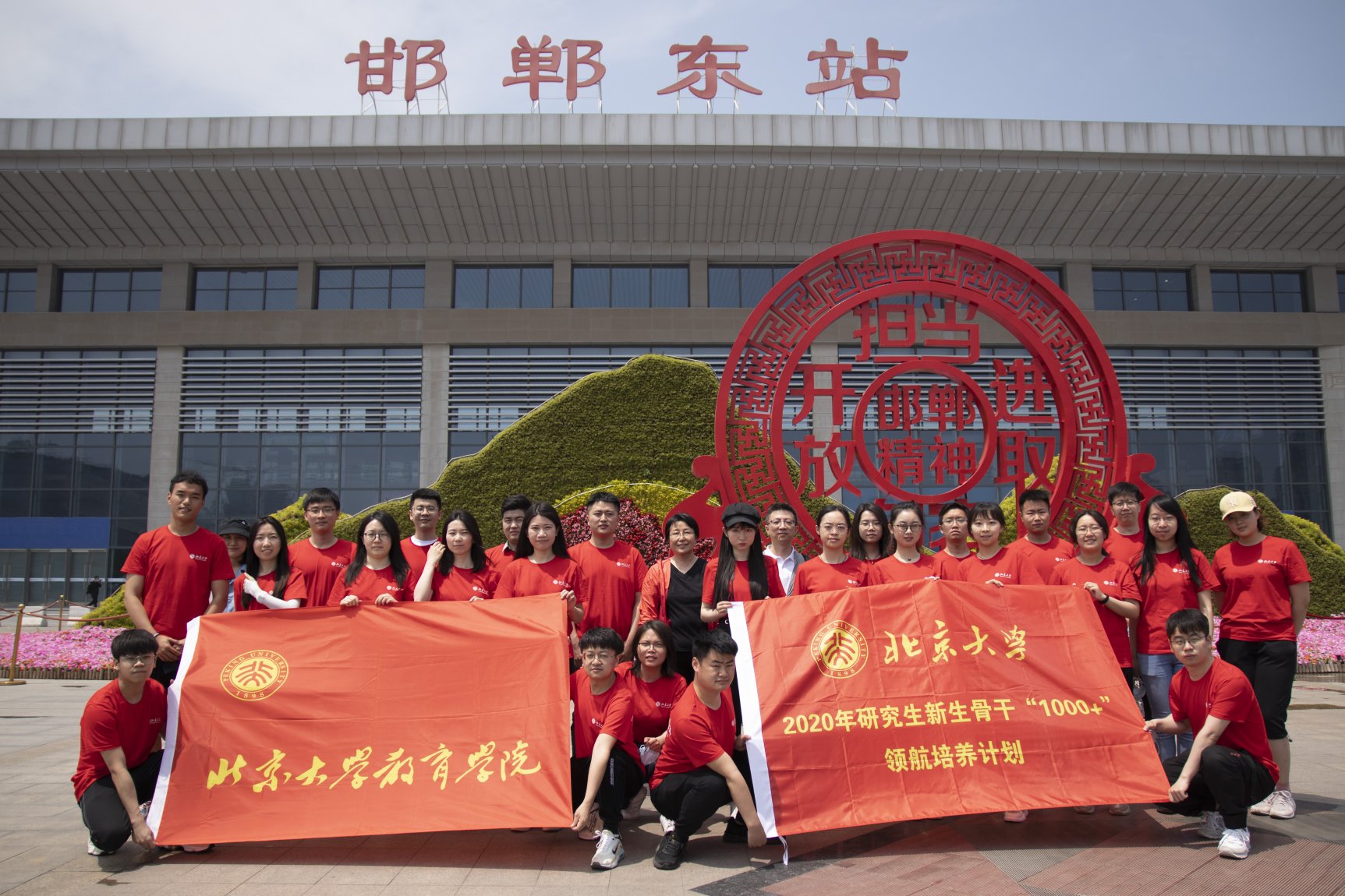 河北邯郸地处河北省最南端,西依巍巍太行,东通华北平原,邻接晋鲁豫三省,是一座具有近三千年悠久历史的文明古城,今日之邯郸亦充满了生机活力,像一颗耀眼的明珠镶嵌在冀南大地。为鼓励青年一代在实践中增长本领、坚定理想信念,发挥研究生教育在服务经济社会发展方面的重要作用,引领广大青年心有所向、奋发有为、知行合一、知践于行,2021年5月21-23日,北大团委与教育学院联合组织二十余位北大师生赴河北省邯郸市开展专题实践活动,在社会实践的大课堂中学史力行,坚定信念跟党走,鼓励北大学子运用专业所长,服务教育发展,在十四五良好开局和乡村教育振兴战略背景下厚植家国情怀。