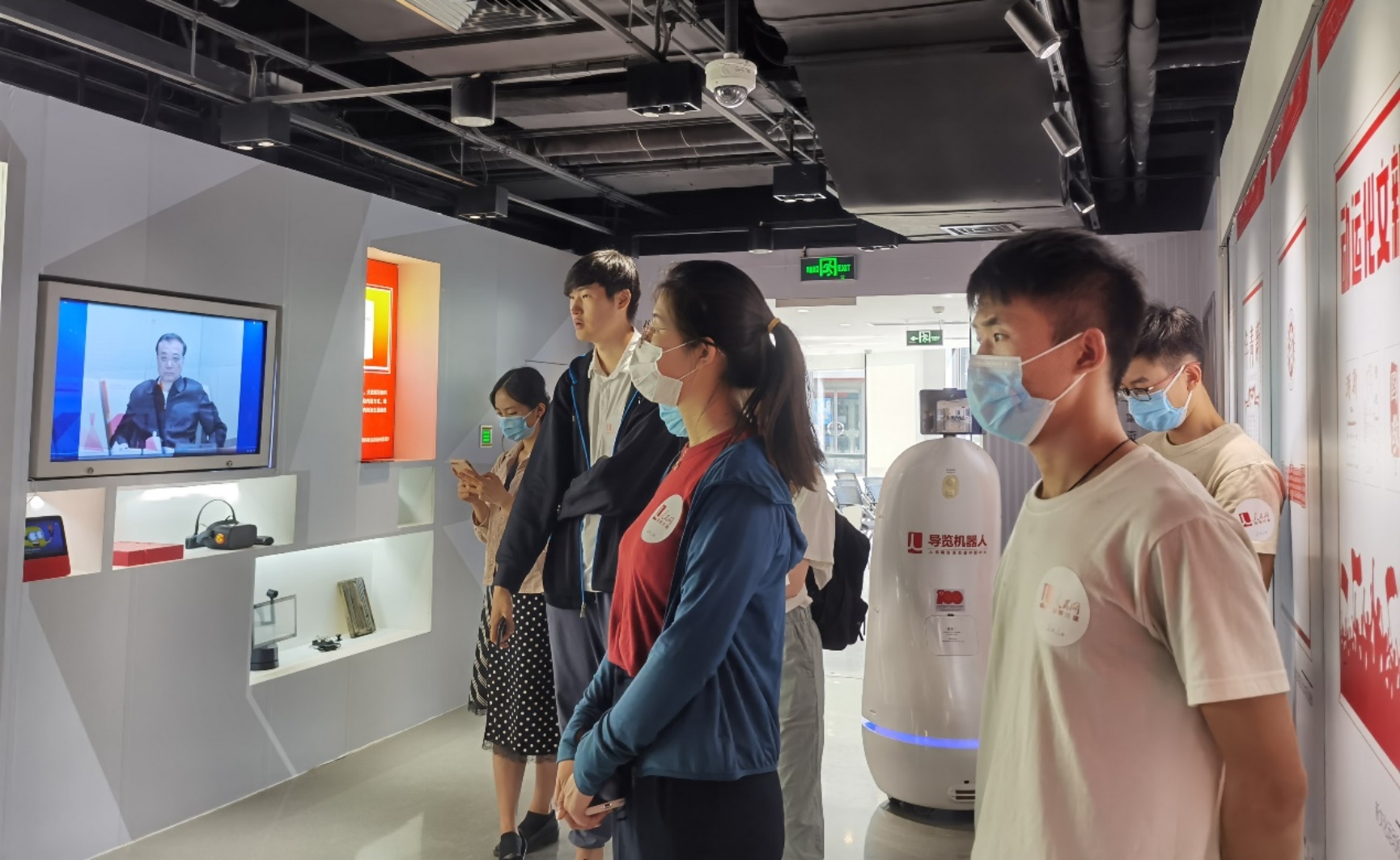 “党员智慧学习服务平台”利用先进的AI技术,以知识图谱的形式辅助党史和党的理论学习,为一体化的学习提供了极佳的知识服务平台;“红色云游”采用3D成像与智能化视频讲解技术,让同学们足不出户便可以身临其境地浏览各地主要的红色教育基地;在沉浸式观影区,同学们佩戴以数字气味技术为基础的专业设备观看“气味电影”《信仰的味道》,重温党的历程;“红色经典我来演”通过基于深度学习的视频生成AI技术,让同学们把自己融合到设定的经典革命电影片段中,加深对红色经典的印象和理解。