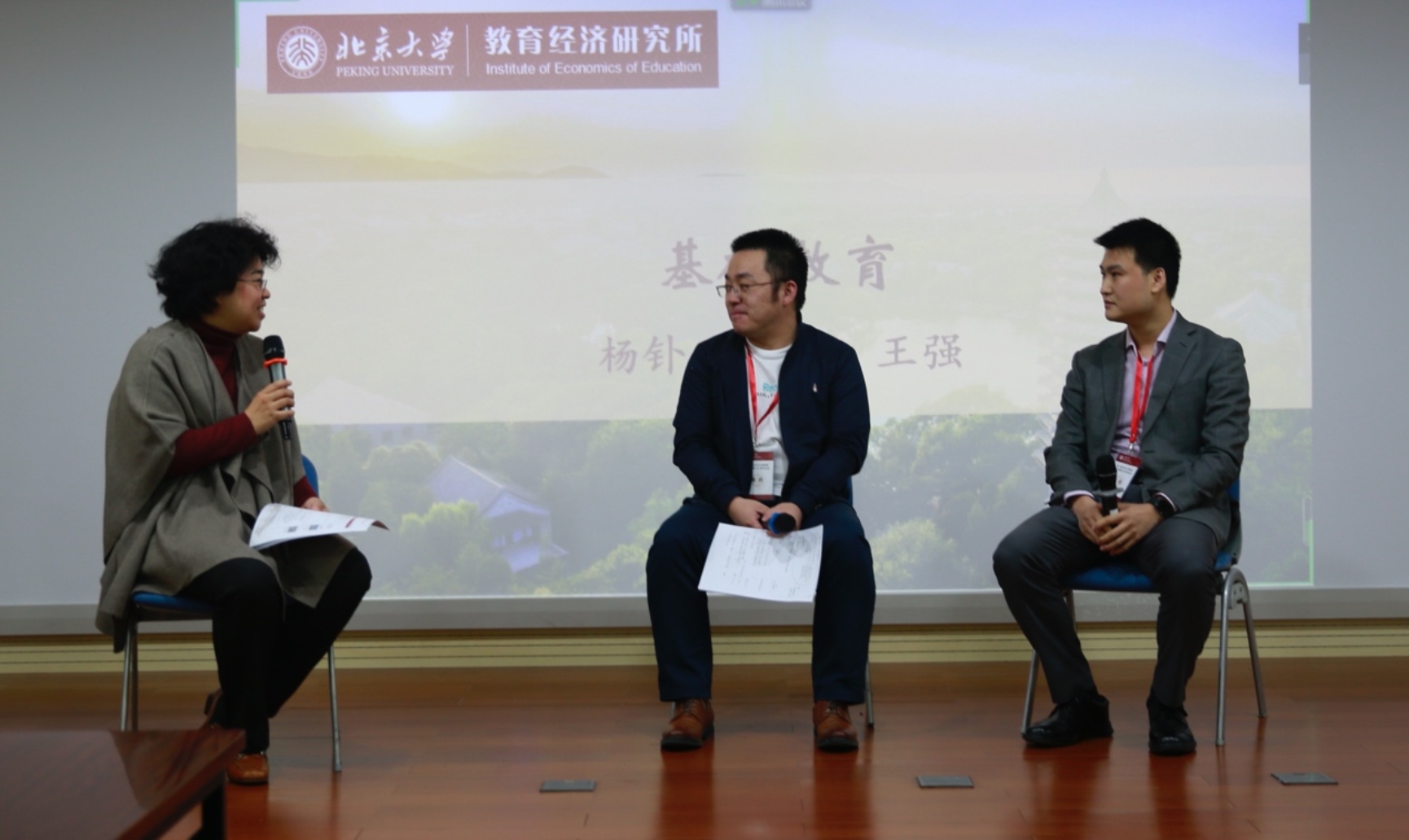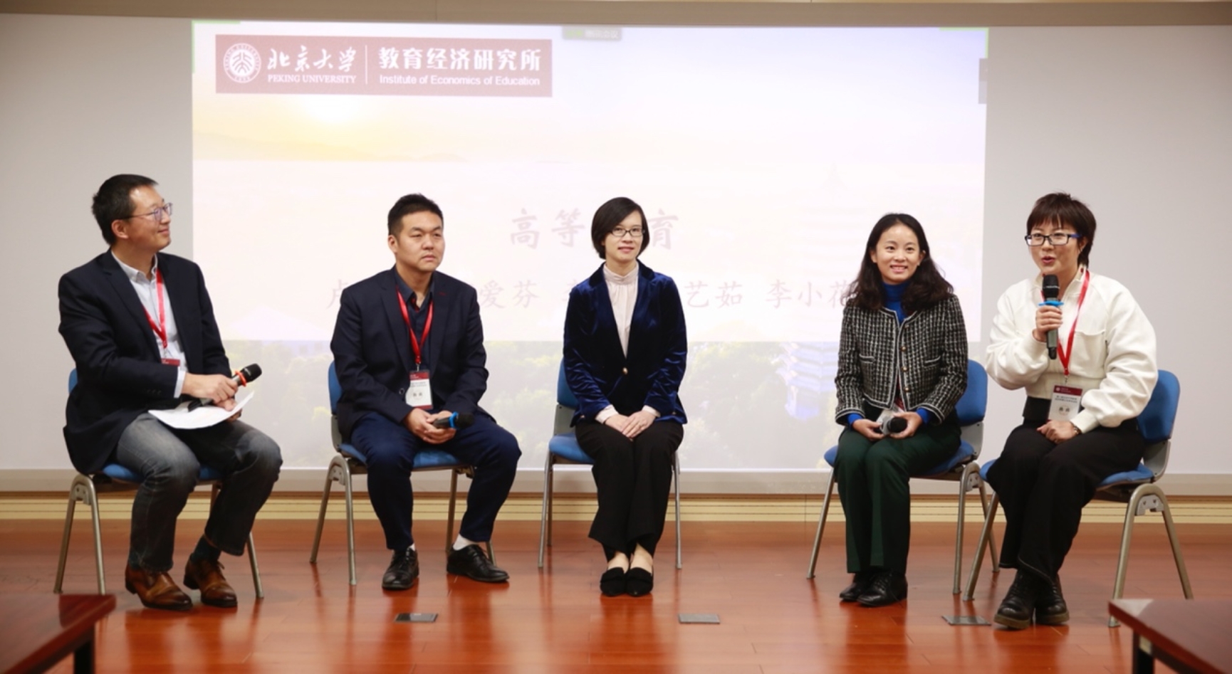 随后的圆桌论坛分为高等教育、基础教育和青年教师职业发展三个主题。高等教育圆桌论坛由北京大学教育经济研究所研究员卢晓东担任主持,与谈人为教育部学位中心研究发展处何爱芬、对外经济贸易大学外语学院李彦、中央财经大学校团委林艺茹、北京中医药大学护理学院李小花,四位与谈人分别就专业设置与大类招生、专业学位研究生培养、毕业生职业发展等问题开展讨论,并结合自身实践经验提出了可能的研究问题和框架。基础教育圆桌议题由北京大学教育经济研究所长聘副教授杨钋主持,与谈人为北京市通州区教委韩晓峰、北京建华实验学校王强,两位与谈人分别就基础教育优质资源均衡化、“双减”后的教育质量提升等问题进行了讨论。青年教师职业经验分享圆桌论坛由欧亿体育2021级博士研究生金红昊主持,与谈人为欧亿体育助理教授朱琼、欧亿体育博士毕业生郑力。两位与谈人就博士论文选题及写作、科研与生活的平衡以及学术劳动力市场求职及职业发展等议题进行了分享,并就博士生们感兴趣的问题进行了详细回答。