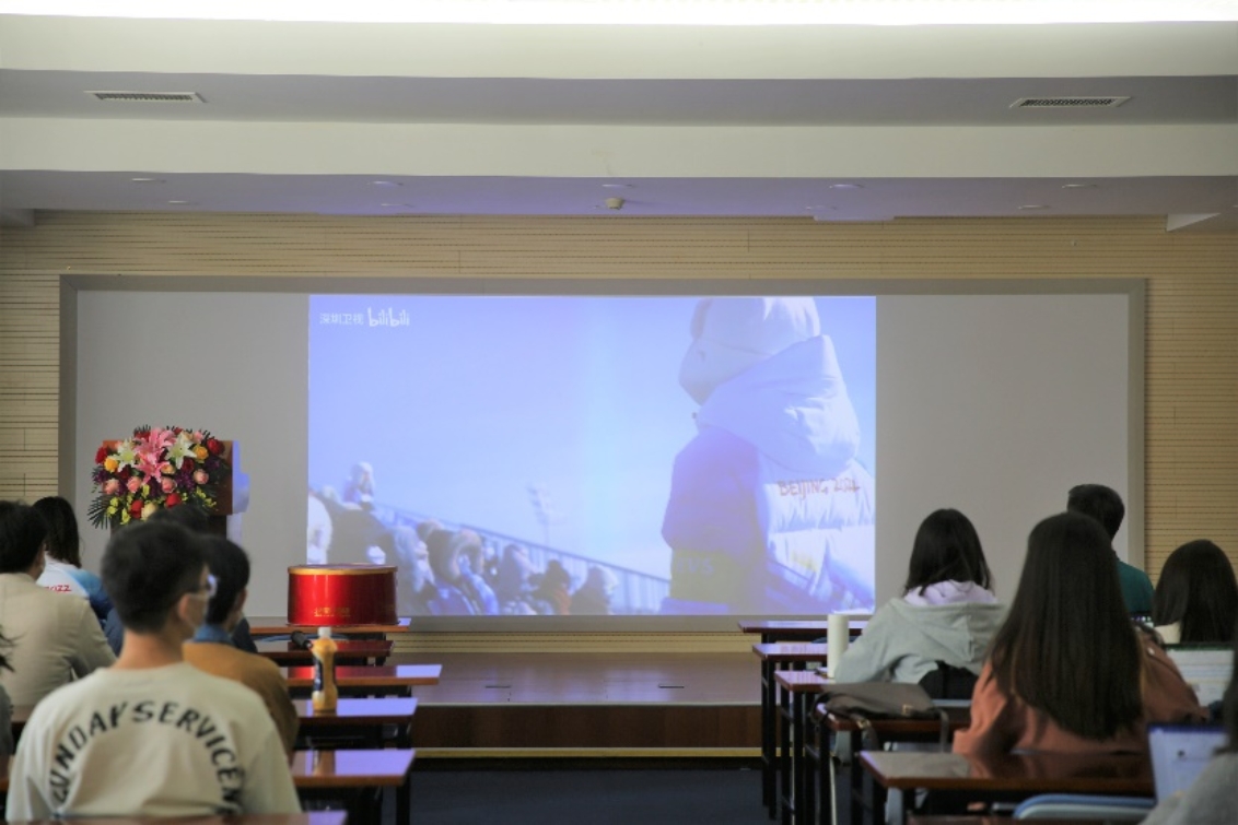 分享会伊始,与会师生观看短片,从冬奥志愿者的角度再次回顾了这场冬奥盛会。在北京2022年冬奥盛事中,北大600余名“冰新一代”,以服务为初心,以奉献为使命,用灿烂的笑容、勤勉的行动,全方位展现着中国冬奥的风采。其中,教育学院2021级硕士生龙媛、林凤仪投身于北京冬奥会、冬残奥会的志愿保障工作中,IED项目博士季伟森参与了冬奥会开幕式表演。