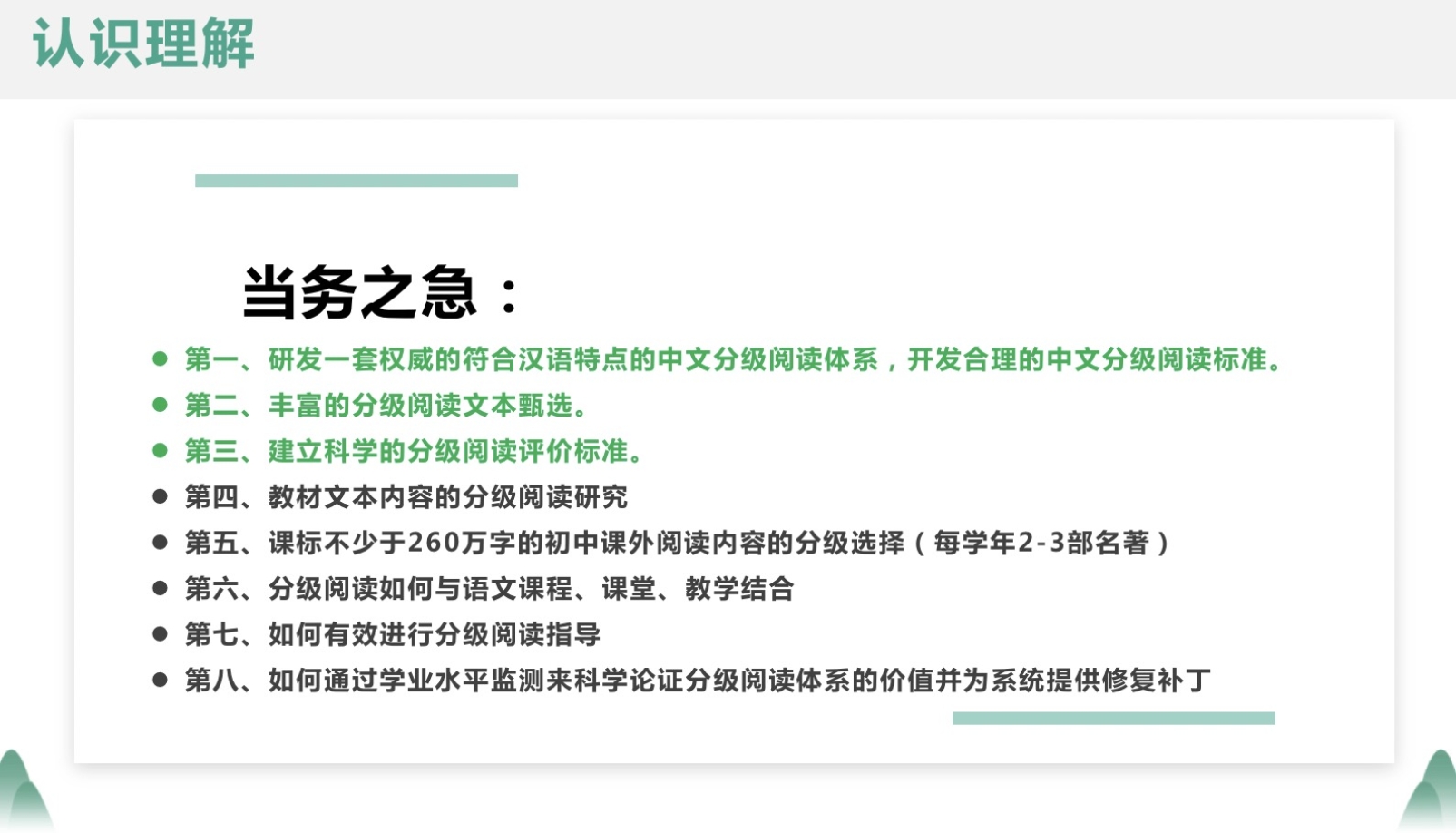 山东省临沂市教育科学院副院长陈中杰汇报了《基于分级阅读评价的学生阅读能力提升策略研究》子课题的研究进展,从设计申报、组建团队,到实施研究、阶段成果,呈现了该子课题逐渐推进的过程,以及团队成员在研究过程中的成长与思考,同时提出期望课题组对研究团队进行专题培训与指导。