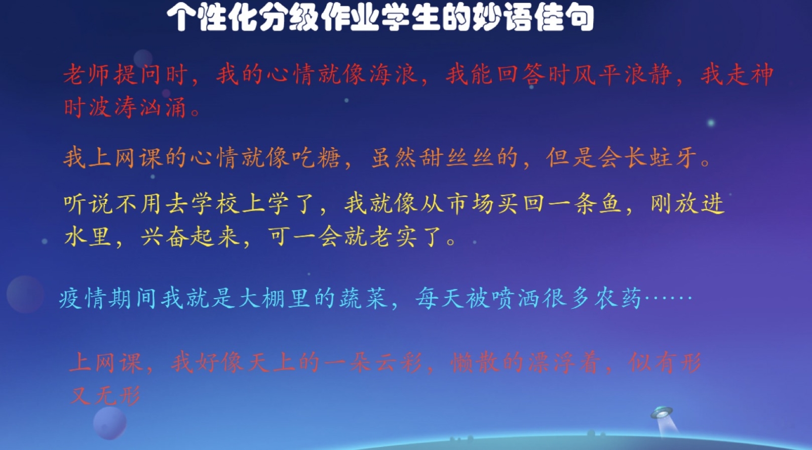 河北省廊坊市第十中学语文教师王文萍分享了当地的阅读教学现状,同时提出了实施分级阅读教学的实际困难,主要集中在拓展阅读书目的甄选、学生阅读能力的测评以及对学生阅读过程的方法指导。王老师还举例说明了她在“双减”背景下阅读作业设计中的分级理念与实践,并阐述了她在整本书阅读教学与篇章阅读教学中的分级理念。