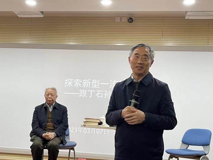 随后,王义遒以《探索新型一流综合大学——跟丁石孙校长办北大》为题,以北京大学的历史发展为主线,生动讲述了北京大学探索新型一流综合大学的实践之路。