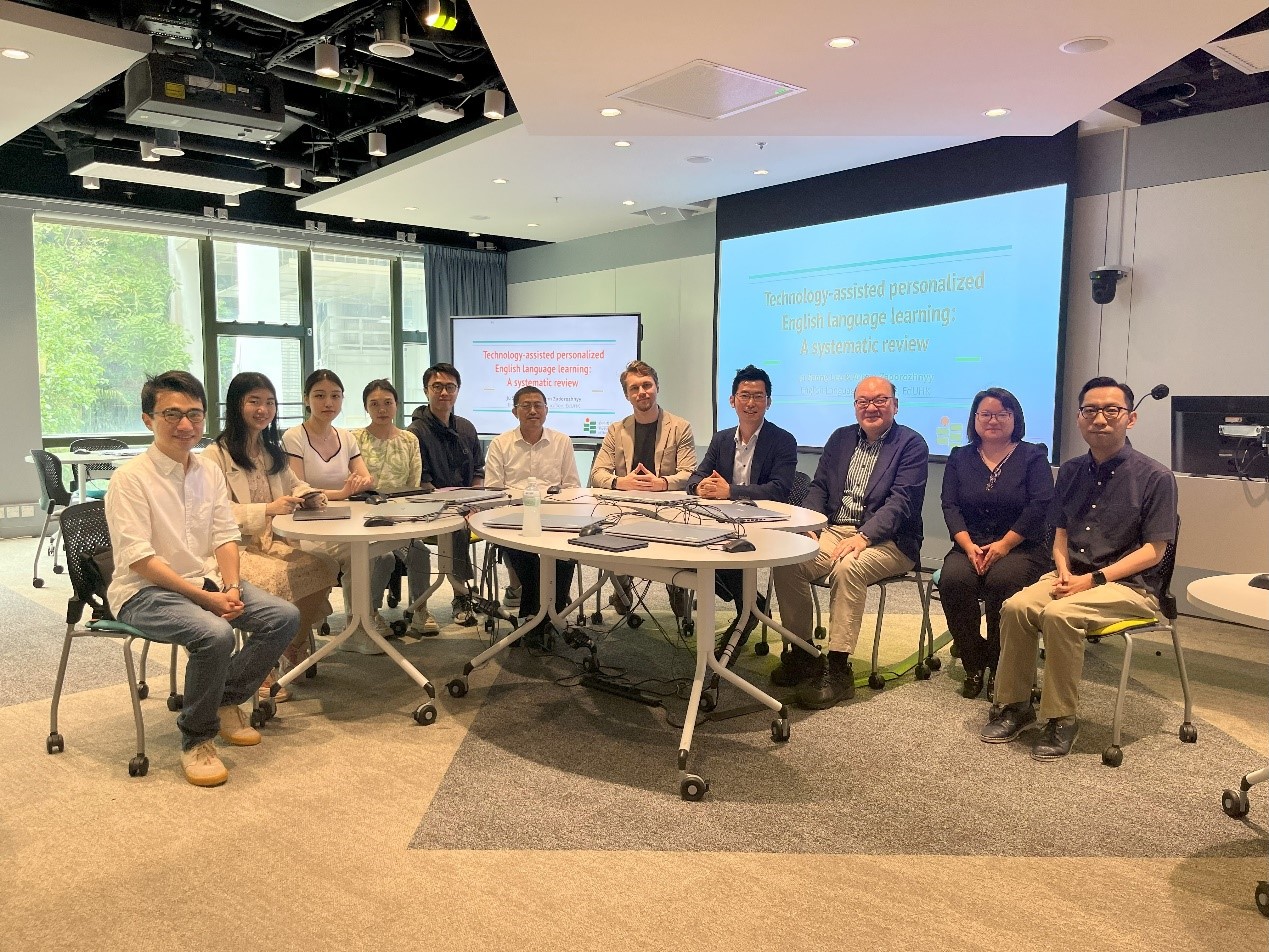 在技术支持的教学和课程变革子领域,项目经理梁敏介绍了总体情况,教育技术系硕士生李姗姗和刘怀亚报告人工智能支持的中小学STEM教育文献综述进展,张誉月和陈昂轩报告智能评测支持的语言学习文献综述进展,来自教大人文学院的李主圣(Ju Seong LEE)助理教授及其博士后介绍了技术支持的语言学习研究进展。贾积有、教大博文及社会科学学院的数学与信息技术系系主任杨良河教授、郑国城副教授、孙丹儿助理教授、香港浸会大学朱金鑫研究助理教授等就这些研究进展进行了点评并提出了发展建议。