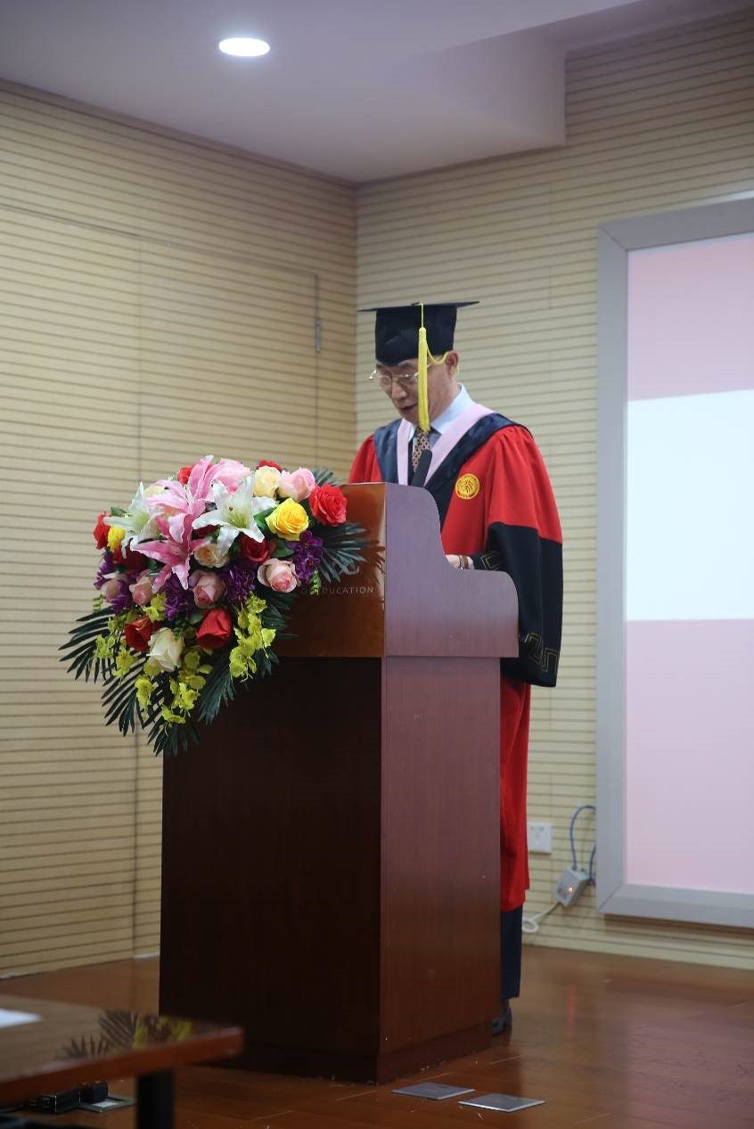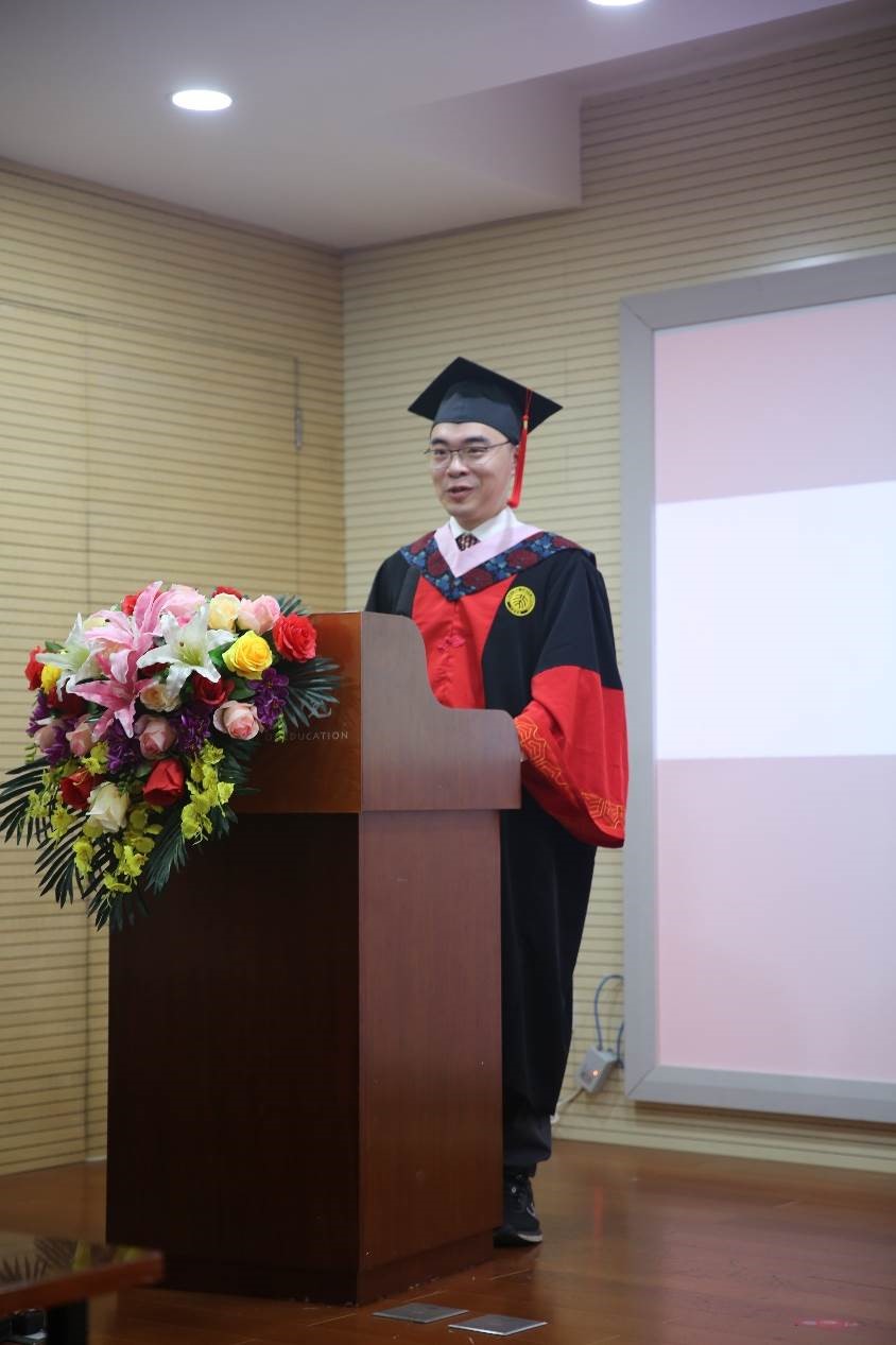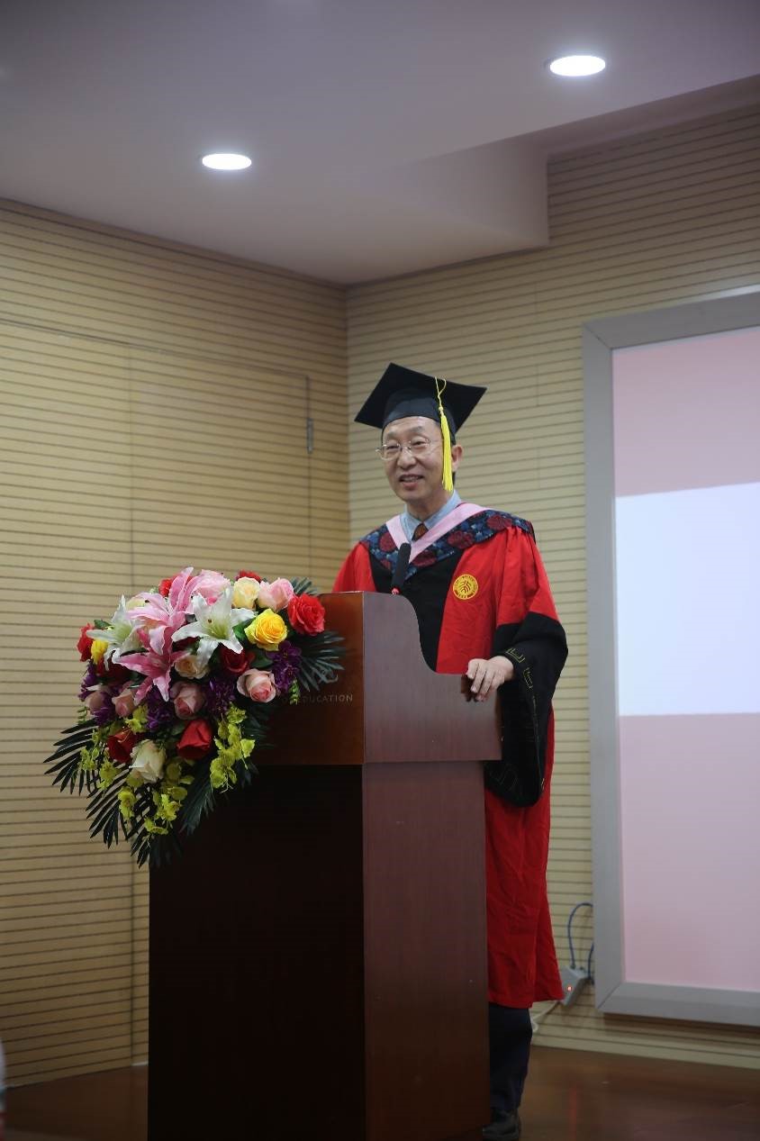 导师代表陈洪捷教授在发言中祝福毕业生同学们勇敢的跃入人海,做一朵奔涌的浪花,并嘱托同学们在丰富且复杂的世界中适当低调,在高调与低调之间自如地进行转换和穿梭,在高调和低调复杂的配置之中找到自己的调位。