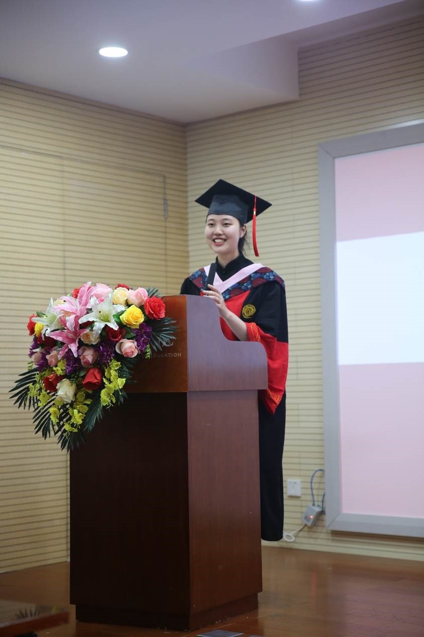 此次毕业典礼首次增设感恩环节,毕业生代表在离别之际向教职工代表致谢。