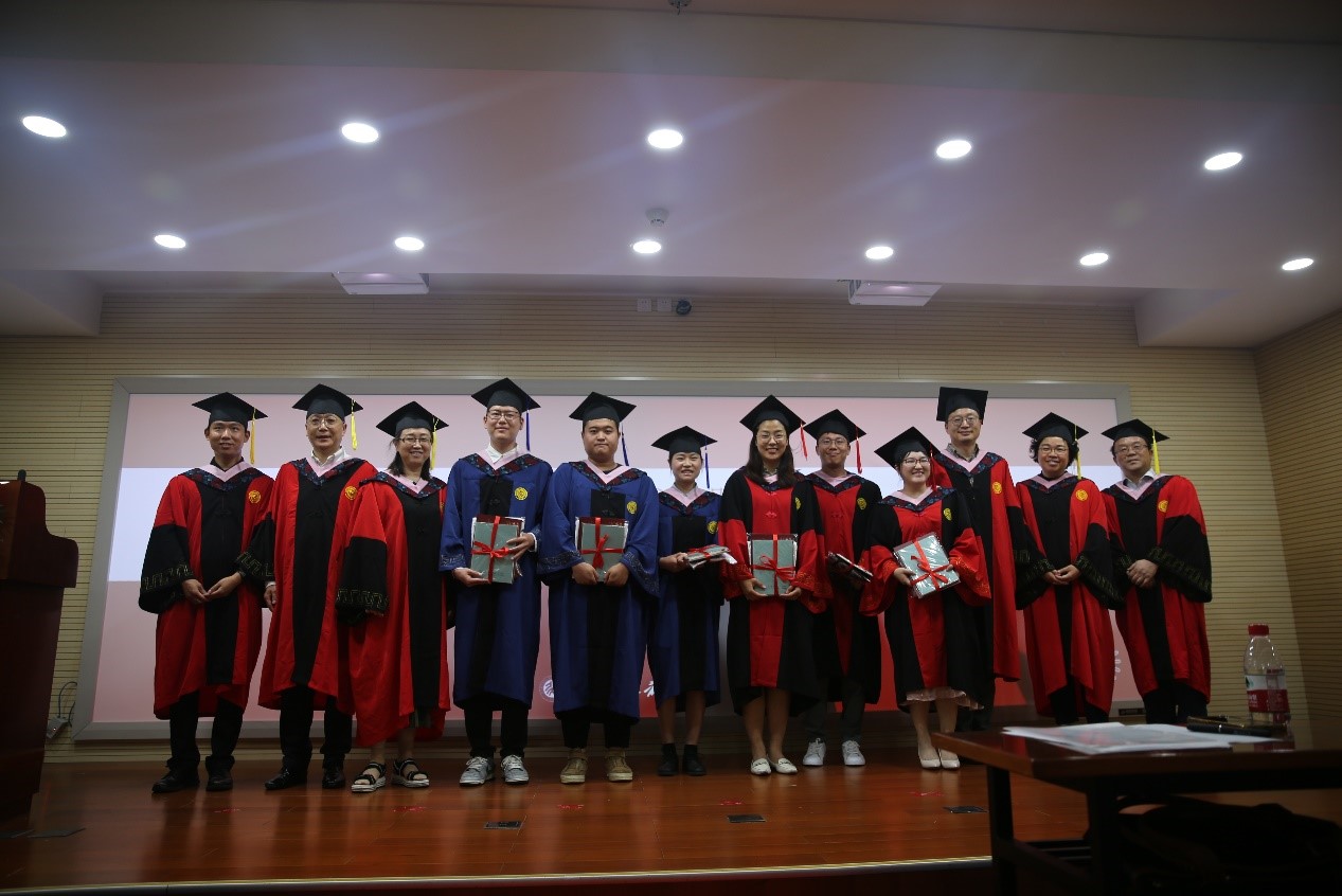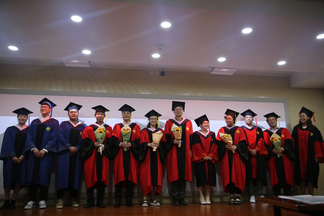 参加典礼全体师生合唱《燕园情》,表达依依惜别之情。仪式最后,毕业生身着学位服与学院教职工代表于学院门前合影留念。