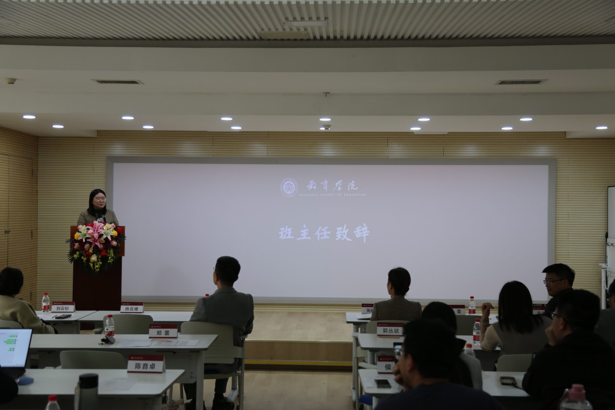 刘云衫教授致辞中把开班典礼比作“见证一场新的诞生”,希望同学们来自不同的学科背景,要处理好与教育学的融入与疏离的关系。她强调:“我们希望把这个项目变成立体的,有实习有实践,更应是主体的,把这段经历变成镌刻在你生命上的东西。”