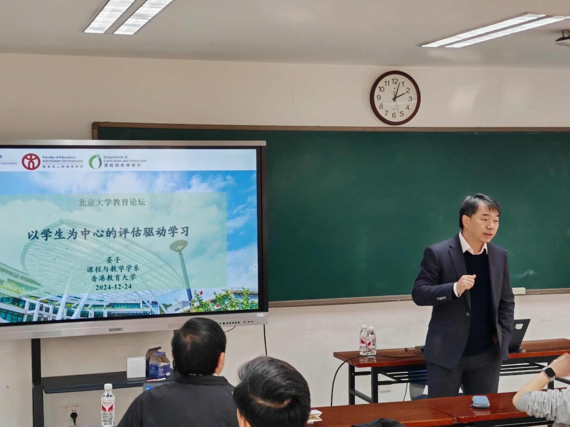 2024年12月24日下午,北京大学教育论坛第311讲在教育学院209教室举行。香港教育大学课程与教学学系主任、香港研究资助局高级研究学者晏子教授受邀进行了讲座,题目是《以学生为中心的评估驱动学习》。本次讲座由教育技术系主任贾积有教授主持。