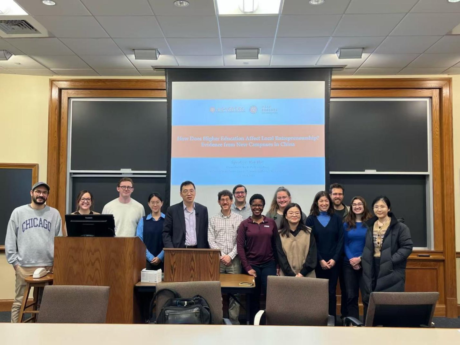 3月20日,应密歇根大学公共政策学院邀请,哈巍教授在该院课程《Causal Inference in Education Policy Research》作题为“How Does Higher Education Affect Local Entrepreneurship? Evidence from New Campuses in China”的学术报告。密歇根大学公共政策学院Brian Jacob教授和Kevin Stange教授出席讲座。该项研究利用新建校区的设立在时间和地理上的差异,并基于中国自1999年以来高等教育快速扩张下构造独特的工具变量,识别高等教育机构对当地创业活动的溢出效应。利用大规模企业注册数据,研究发现新校区的启用会增加所在区县的企业进入数量,尤其是在知识密集型商业服务领域。上述效应随着地理距离的增加呈现出倒U型模式。这一影响通过促进高校与本地企业的产学研合作以及扩大本地高技能劳动力供给发挥作用。研究表明对高等教育领域的大规模公共投资能够促进产业集聚,并助力发展中国家的经济结构向知识密集型转变。3月22日,博士生林璐在中国留美经济学会(China Economists Society,CES)北美年会作相关学术报告。