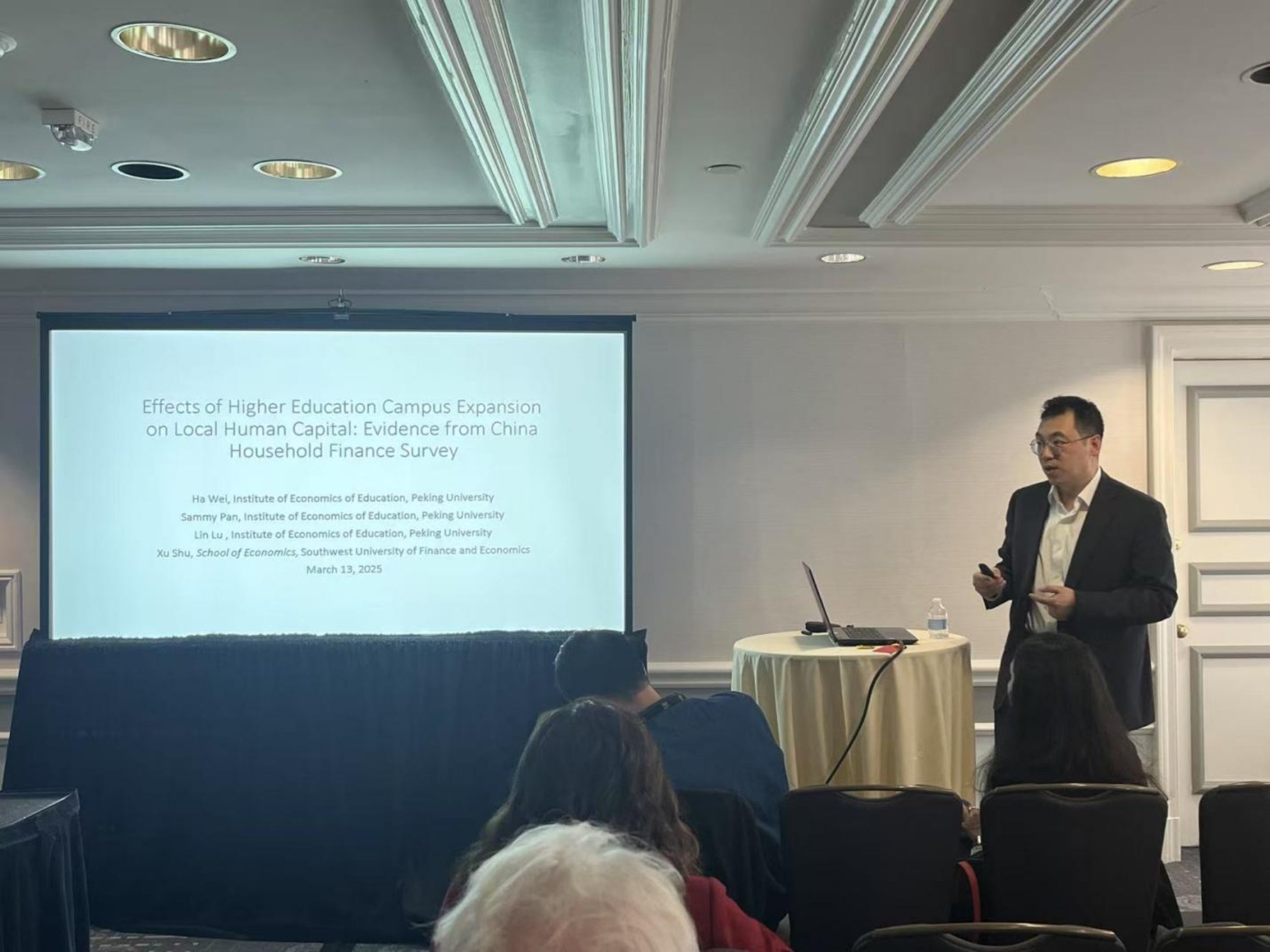 3月13日上午,哈巍教授作题为“Effects of Higher Education Campus Expansion on Local Human Capital: Evidence from China Household Finance Survey”的口头报告。该项研究聚焦中国扩招以来高校新建校区对地区个人教育程度的影响。研究采用队列双重差分法,结合2019年中国家庭金融调查数据与新建校区数据,发现新建校区使所在区县内个体完成高等教育的概率显著提高5.08%,但对平均受教育年限影响不显著。专科校区对个体取得专科学历的影响显著,本科校区则不具有显著影响。新建校区对相对劣势群体(如女性、农业户口者)的影响更为显著。研究发现有助于理解高等教育扩张对个体人力资本积累的影响。
