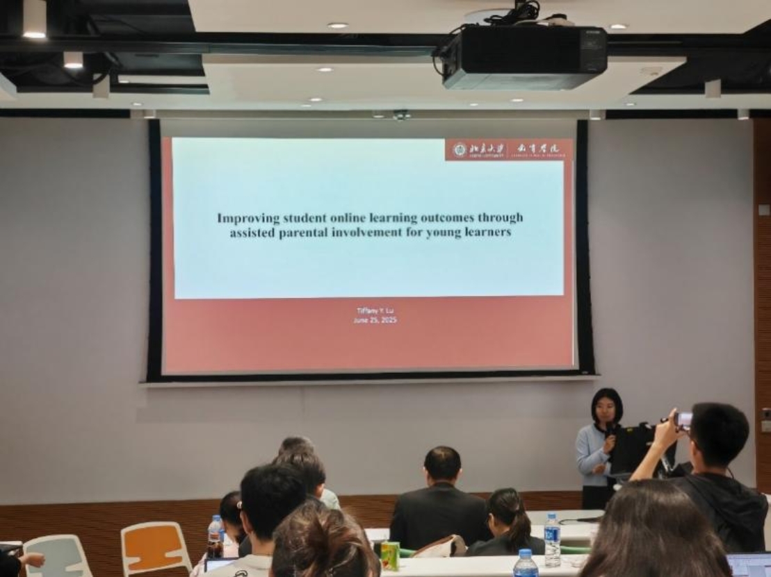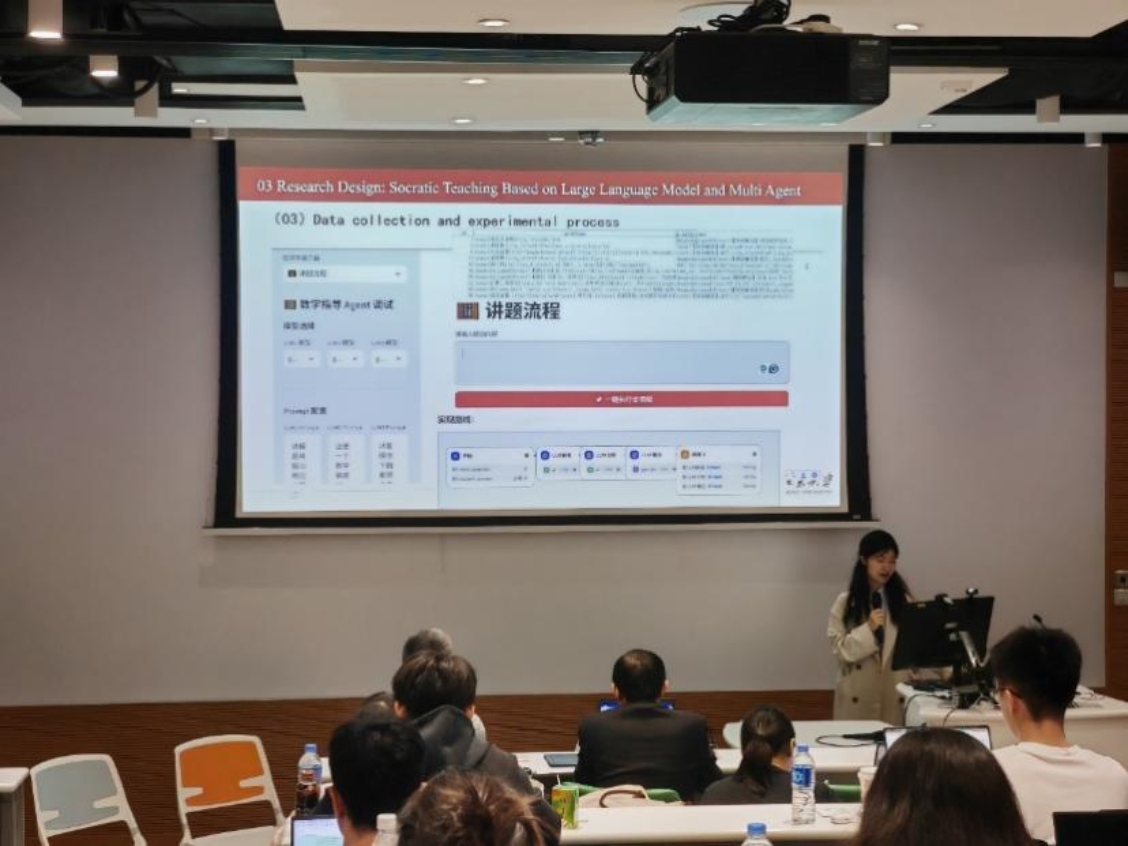 6月25日下午,代表团学生参加北大-教大的联合研究生学术研讨会。会议由教大博士生熊彧涵、杨仲尧主持,教大数学与信息技术学系研究助理教授杨茵博士作了点评。教育学院博士生安美心、张誉月、陈昂轩、刘怀亚,硕士生李子健、旷欣然、孙亦非以及历史系本科生桂丽分别作了“聊天机器人支持的对话教学”“家长参与促进年轻学习者在线学习表现”“基于大语言模型多智能体的数学智能教学系统”“基于多智能体的课程设计”“生成式人工智能助力现实世界数学学习:培养六年级学生的适应性专长”“介绍与验证反馈流畅度:生成式人工智能和教师反馈对元认知过程的影响”“从图像到答案:OCR与DeepSeek驱动的智能数学辅导平台”“数独智能教学系统的设计和实验研究”“AI驱动的继续教育学员反馈智能采集与课程效果评价新模型”等报告,分享了研究成果。