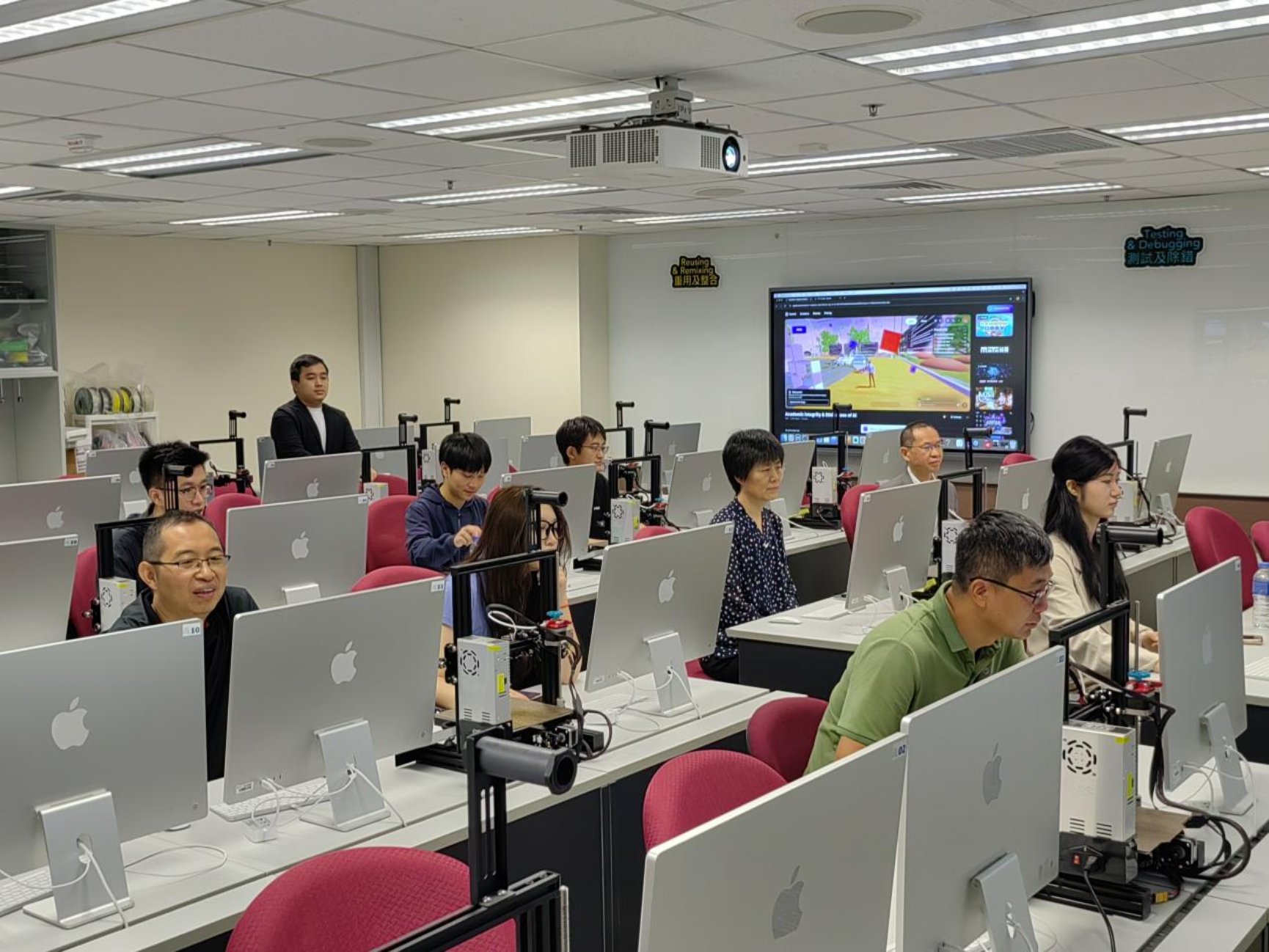 授课活动结束后,代表团参观了教大教学科技中心。该中心联席执行主任郑国城博士等介绍了教大在通过大语言模型等人工智能技术赋能教学和科研的技术支撑设施,代表团在大语言模型工作室、元宇宙教育实验室和教学视频制作室进行了实地体验。