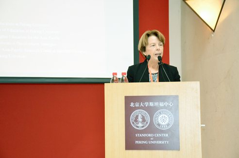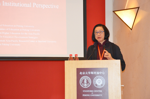 论坛开幕式由北京大学-斯坦福中心主任戴慕珍(Jean C.Oi)教授主持。戴慕珍教授、斯坦福大学副教务长Ann M.Arvin教授和中国教育发展战略学会会长、欧亿体育名誉院长闵维方教授在开幕式上致辞,欧亿体育党委书记阎凤桥教授做题为《从国家精英高校到世界一流大学:制度逻辑思考》的开幕式报告。