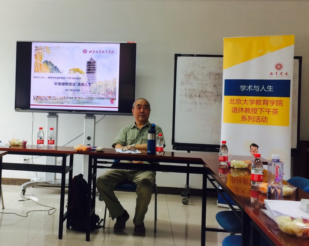 6月9日下午,“学术与人生——教育学院退休教授下午茶”系列活动第一场《听原北大附中校长康健教授谈“美丽人生”》在学院209教室顺利举行,北大附中原校长、教育学院康健教授和与会师生一起漫谈学术与人生。康健教授分享了他担任北大附中校长、创办民办学校和参与“美丽中国”项目的人生经历,和同学们交流了对基础教育现实问题的看法。