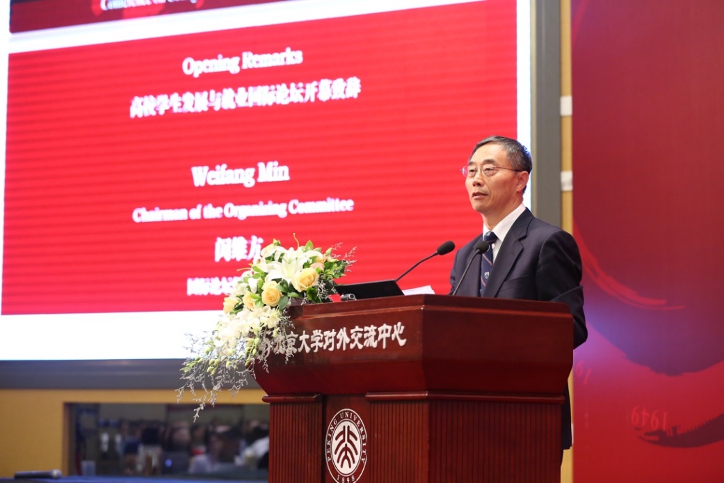 闵维方教授首先代表论坛组委会对各位来宾表示欢迎。他指出,随着信息化和知识经济时代的到来,高等教育在国家发展进程中正在扮演着越来越重要的角色。然而,由于我国高等教育的扩招,劳动力市场上合适的岗位越来越少,与此同时相应岗位的要求却越来越高。为此,高校应致力于改革教学过程,以使毕业生能力适应新时代发展需求。他表示,相信此次论坛能够为来自全球的研究者和决策者提供一个平台,共同为年轻一代的发展做出贡献。