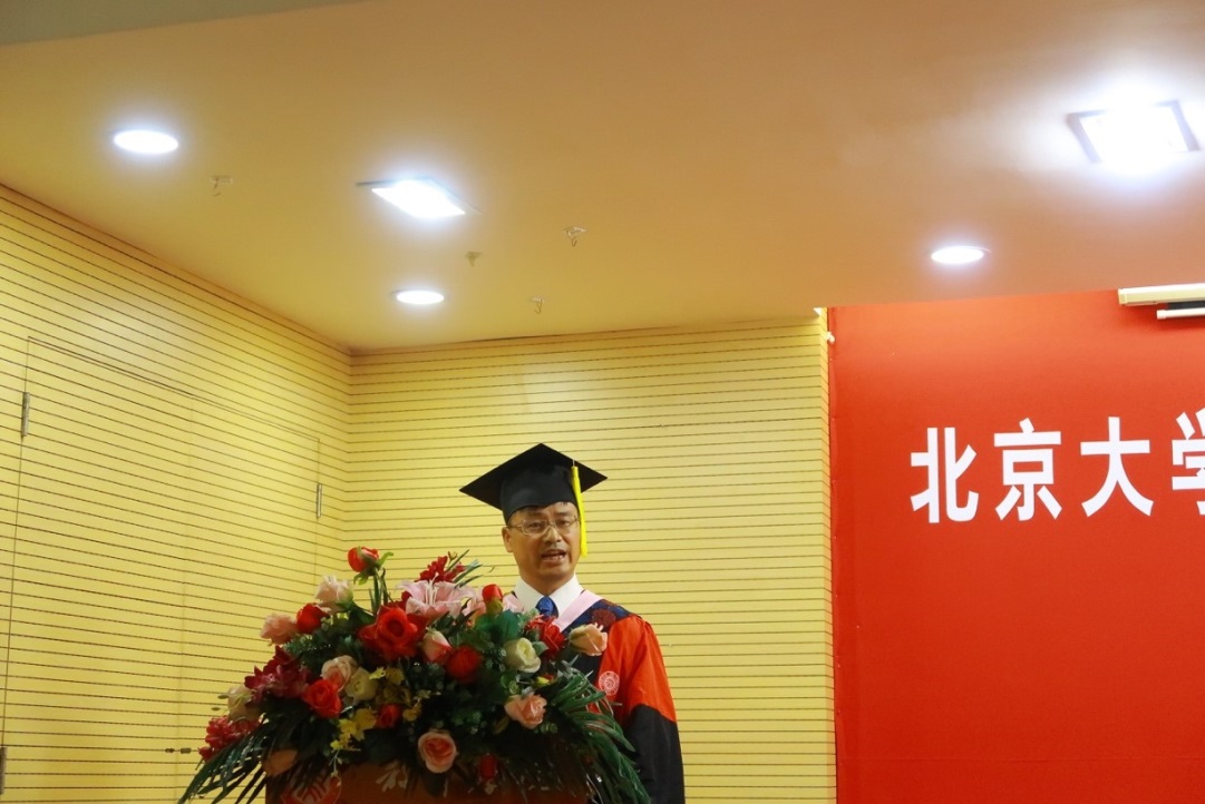 最后,教育学院院长陈晓宇教授在同学们的欢呼声和掌声中为毕业生致辞。他首先代表学院教职员工向获得博士、硕士学位的全体毕业生表示热烈的祝贺,总结一年来学生的学业成就和学院人才培养成果,以“教育人的社会责任”为主题讲述教育在人类文明传承和科学文化创新中的重要职责,并向毕业生提出了三点希望。一是不忘对教育的承诺;二是能坚守教育理想;三是促进教育的专业化发展。陈晓宇院长在讲话最后,以海子的诗祝福毕业生永葆心中的阳光,温暖和照亮世界,也勉励大家继续秉持北大庄严无畏的科学和民主精神,求真理,得自由。