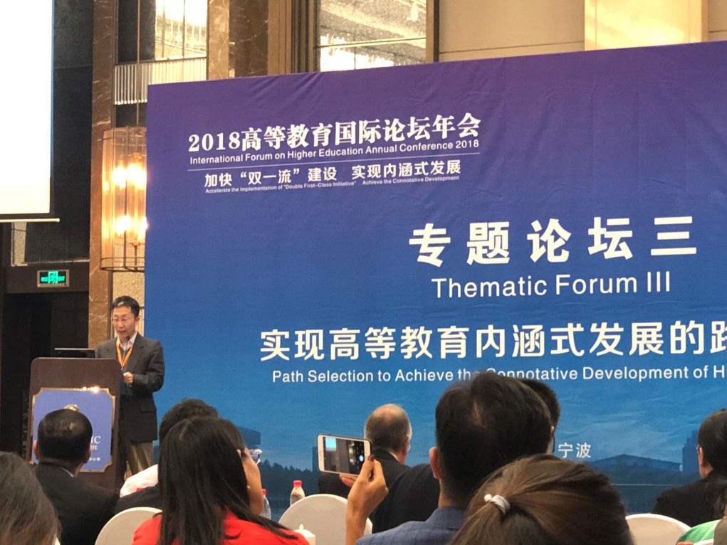 中国高教学会于2018112-4日在宁波召开国际高等教育国际论坛年会,本次会议由宁波市人民政府支持,宁波市教育局、宁波大学承办,浙江大学、宁波工程学院、浙江医药高等专科学校协办。会议主题是“加快‘双一流’建设,实现内涵式发展”。本次会议受到国内外专家学者的高度的、持续的关注。据悉,来自美国、英国、法国、澳大利亚、日本、巴基斯坦等15个国家的近50位外国专家,以及国内百余所高校及相关机构的专家学者,共1100余人参会。