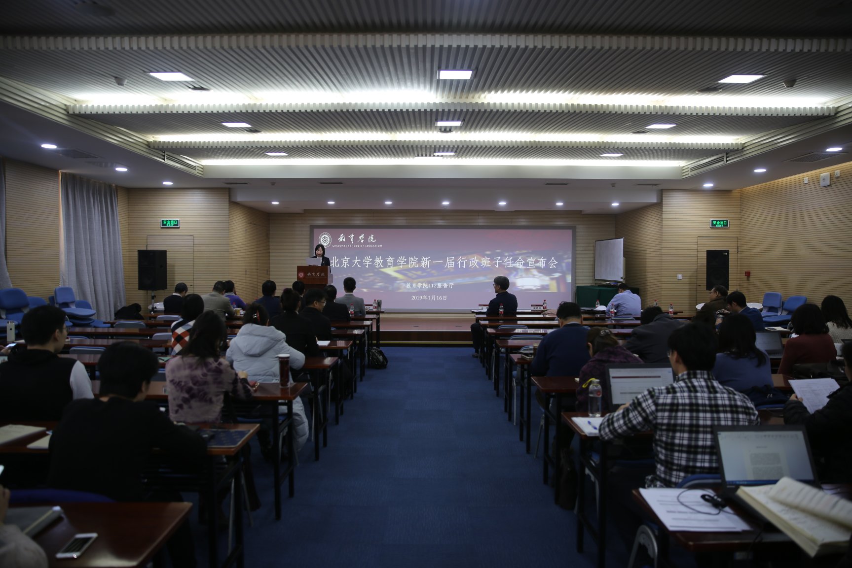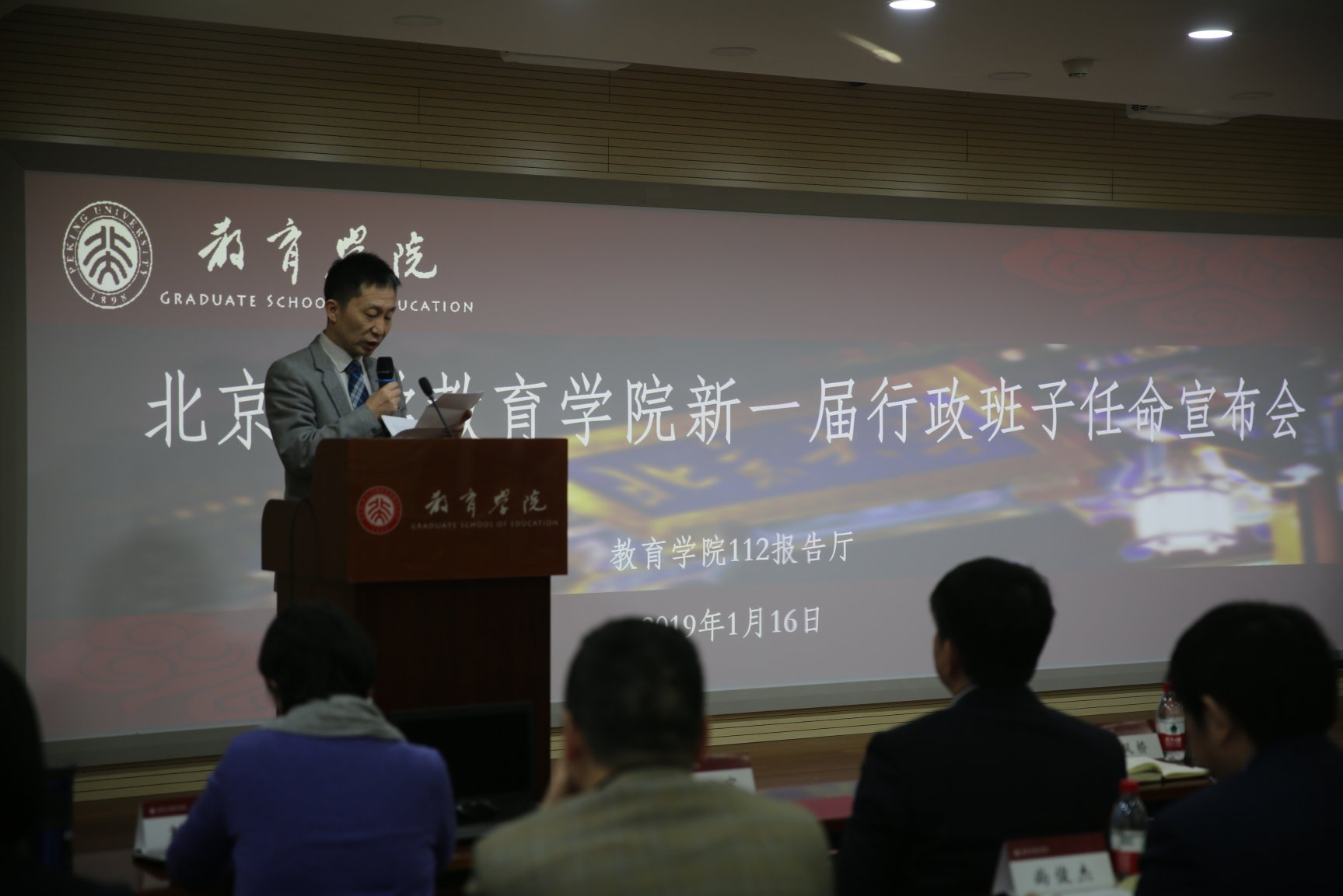 2019年1月16日上午,欧亿体育行政班子换届宣布会在教育学院报告厅顺利召开。北京大学副校长王博、校党委组织部常务副部长霍晓丹、教育学院新老行政领导班子成员和在职教职员工参加了宣布会,会议由霍晓丹主持。