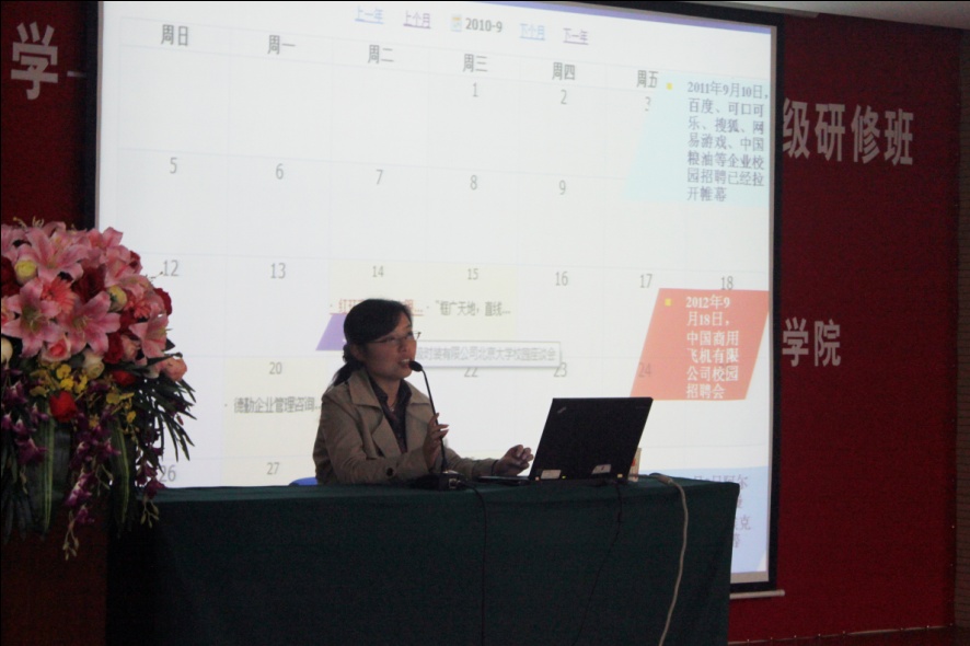 作为教育学院教育教育经济与管理专业博士研究生,吕媛老师首先以师姐的身份,结合自己在教育学院的学习经历,向各位师弟师妹讲述了自己的求职感受。随后,吕老师又从求职要素、就业形势、2012年国家主要就业政策、就业指导中心品牌服务项目以及学生普遍关注的重大企业招聘宣讲会五个方面给在座的同学做了详细的介绍。在对于如何做好求职准备方面,吕老师指出,每一位毕业生要认真把握好毕业季的重要节点,合理安排好时间,才能做到从容应对有条不紊。